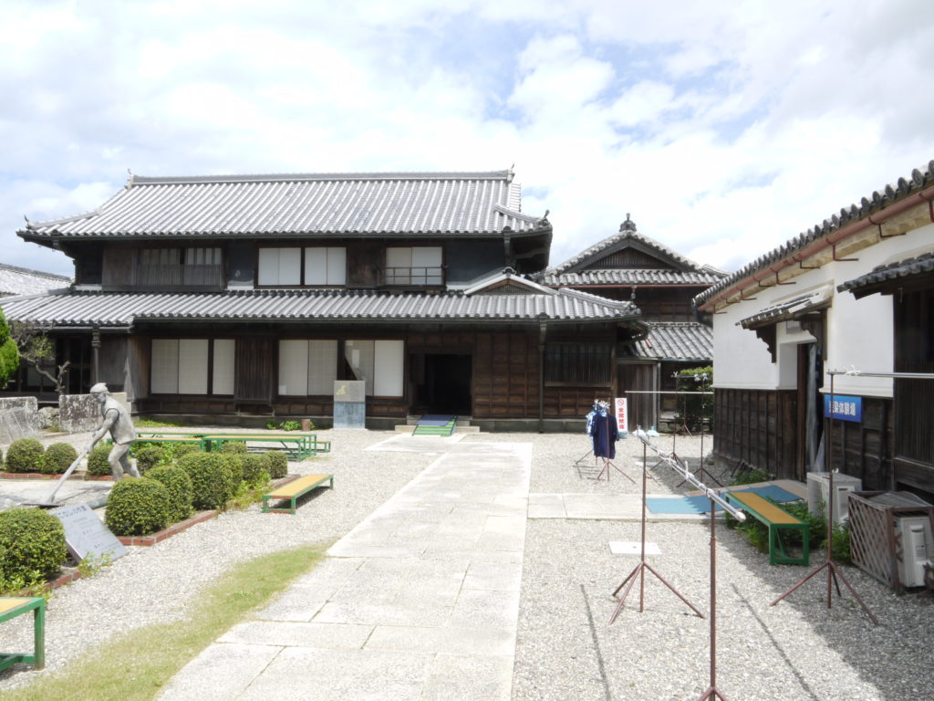 正面が奥村家の屋敷、右の建物では藍染体験ができます。